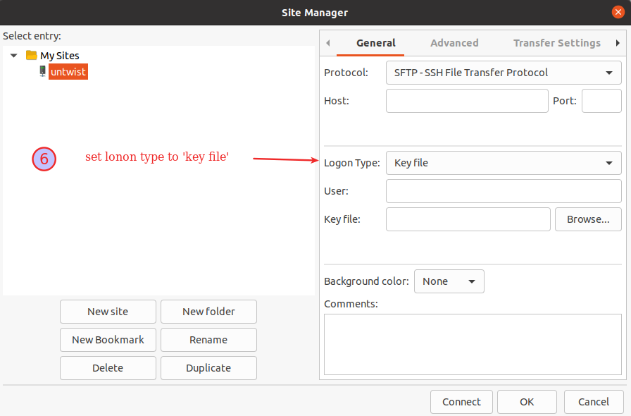 then go back to step 4 and select the key newly formatted key you just created (my_untwistsftp_key).